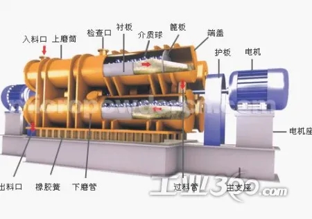 振動(dòng)磨是利用圓筒的高頻振動(dòng),筒中的鋼球或鋼棒介質(zhì)依靠慣性力沖擊物料,介質(zhì)沖擊物料時(shí)的加速度可達(dá)10g-15g,因此具有結(jié)構(gòu)緊湊、體積小、重量輕、能耗低、產(chǎn)量高、粉磨粒度集中、流程簡化、操作簡單、維修方便、襯板介質(zhì)更換容易等優(yōu)點(diǎn),可廣泛用于冶金、建材、礦山、耐火、化工、玻璃、陶瓷、石墨等行業(yè)制粉。