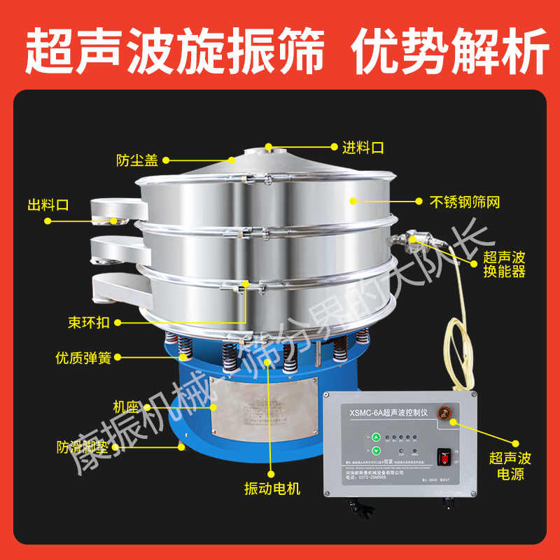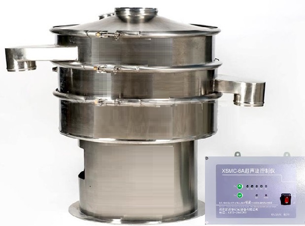 超聲波振動(dòng)篩是將220V、50Hz或110V、60Hz電能轉(zhuǎn)化為36KHz的高頻電能,輸入超聲換能器,將其變成36KHz機(jī)械振動(dòng),產(chǎn)生的功率超聲波使篩網(wǎng)作高頻振動(dòng)。篩網(wǎng)上的物料在作低頻旋振運(yùn)動(dòng)的同時(shí),疊加上超聲振動(dòng),既可防止網(wǎng)孔堵塞,又可使篩分機(jī)提高產(chǎn)量和質(zhì)量,從而達(dá)到快速篩分和清網(wǎng)的目的,使超微細(xì)粉篩分成為易事。該系統(tǒng)在傳統(tǒng)的振動(dòng)篩基礎(chǔ)上在篩網(wǎng)上引入一個(gè)低振幅、高頻率的超聲振動(dòng)波(機(jī)械波),以改變超微細(xì)分體的篩分性能。特別適合高附加值精細(xì)分體的用戶使用。