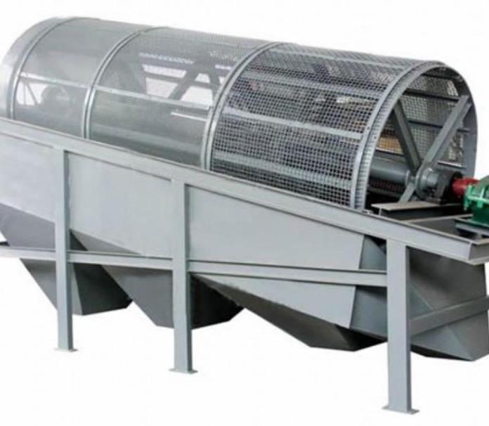 當(dāng)物料進(jìn)入重型滾筒篩內(nèi)部篩網(wǎng)時,由于滾筒裝置的傾斜與轉(zhuǎn)動,使篩面上的物料翻轉(zhuǎn)與滾動,使合格物料(篩下產(chǎn)品)經(jīng)滾筒外圓的篩網(wǎng)排出,不合格的物料(篩上產(chǎn)品)經(jīng)滾筒末端排出。由于物料在滾筒內(nèi)的翻轉(zhuǎn),滾動,使卡在篩孔中的物料可被彈出,防止篩孔堵塞。
