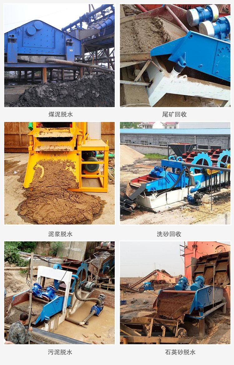 水洗砂:洗砂行業(yè)應(yīng)用于攪拌機(jī)后的渣水分離,將砂子和泥水分離,砂子選出達(dá)到建筑使用要求。