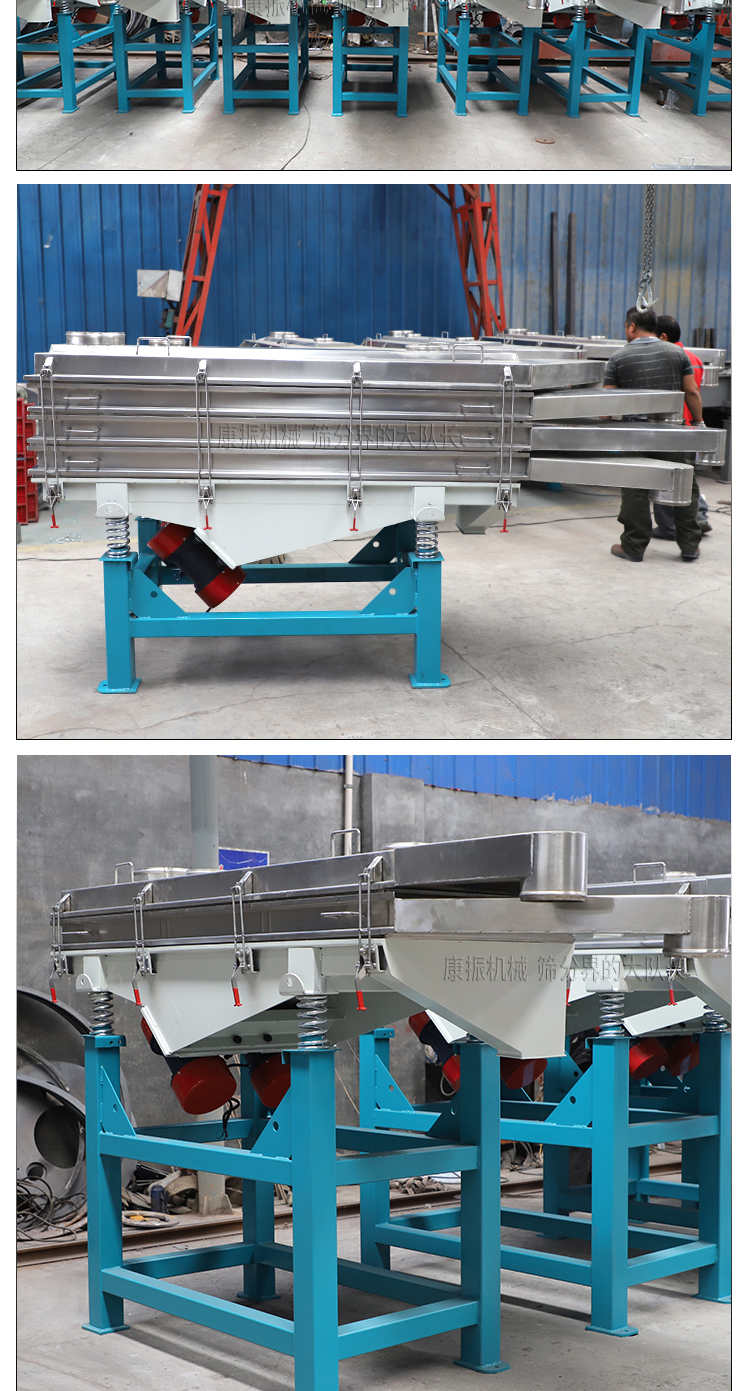 直線振動(dòng)篩(直線篩)穩(wěn)定可靠、消耗少、噪音低、壽命長(zhǎng)、振型穩(wěn)、篩分效率高等優(yōu)點(diǎn)。