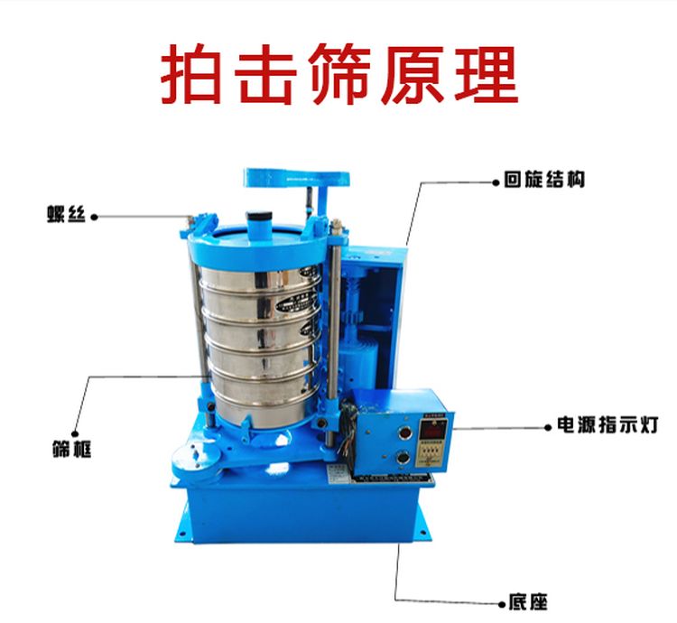 拍擊式標(biāo)準(zhǔn)振篩機主要由機座、篩與傳動機構(gòu)等部分組成??膳鋫鋵S脢A具、即可裝夾Φ200試驗篩,又可裝Φ75、Φ100套篩,裝夾方便靈活,夾緊牢靠,拍擊式標(biāo)準(zhǔn)振動篩可篩分多種特性的產(chǎn)品。適用于普通磨料粒度組成檢查和超硬材料生產(chǎn)分級及粒度組成檢查,亦廣泛用于地質(zhì)、冶金、粉體、化工、建工水泥、醫(yī)藥、國防等部門科研生產(chǎn)實驗室,對物料進行篩分檢測。拍擊篩作為一種試驗篩分設(shè)備,優(yōu)點有很多,以下為您列舉5點說明