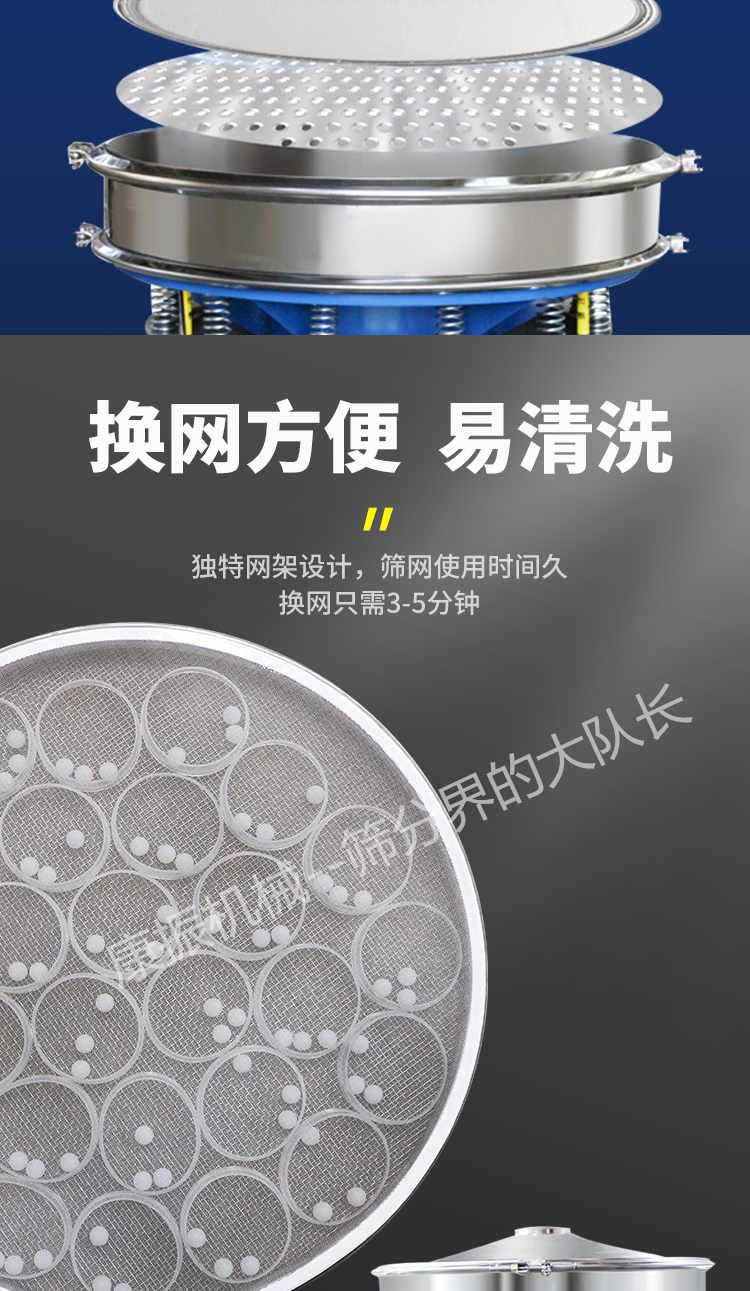 篩網(wǎng)更換便捷—旋振篩根據(jù)不同需要有多種網(wǎng)架結(jié)構(gòu);其中一種把更換篩網(wǎng)的時間降到3~5分鐘,比其他類型篩機節(jié)約30~60分鐘。篩網(wǎng)壽命更長,效率更高。
