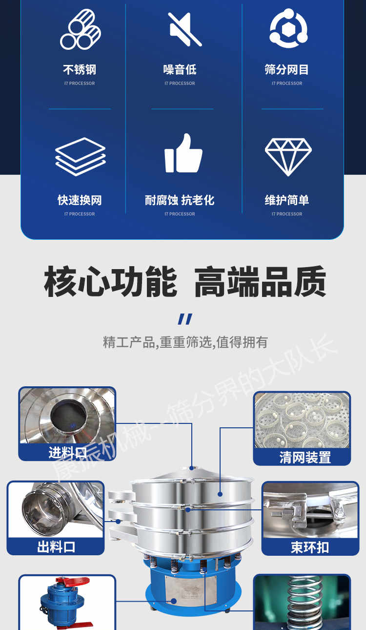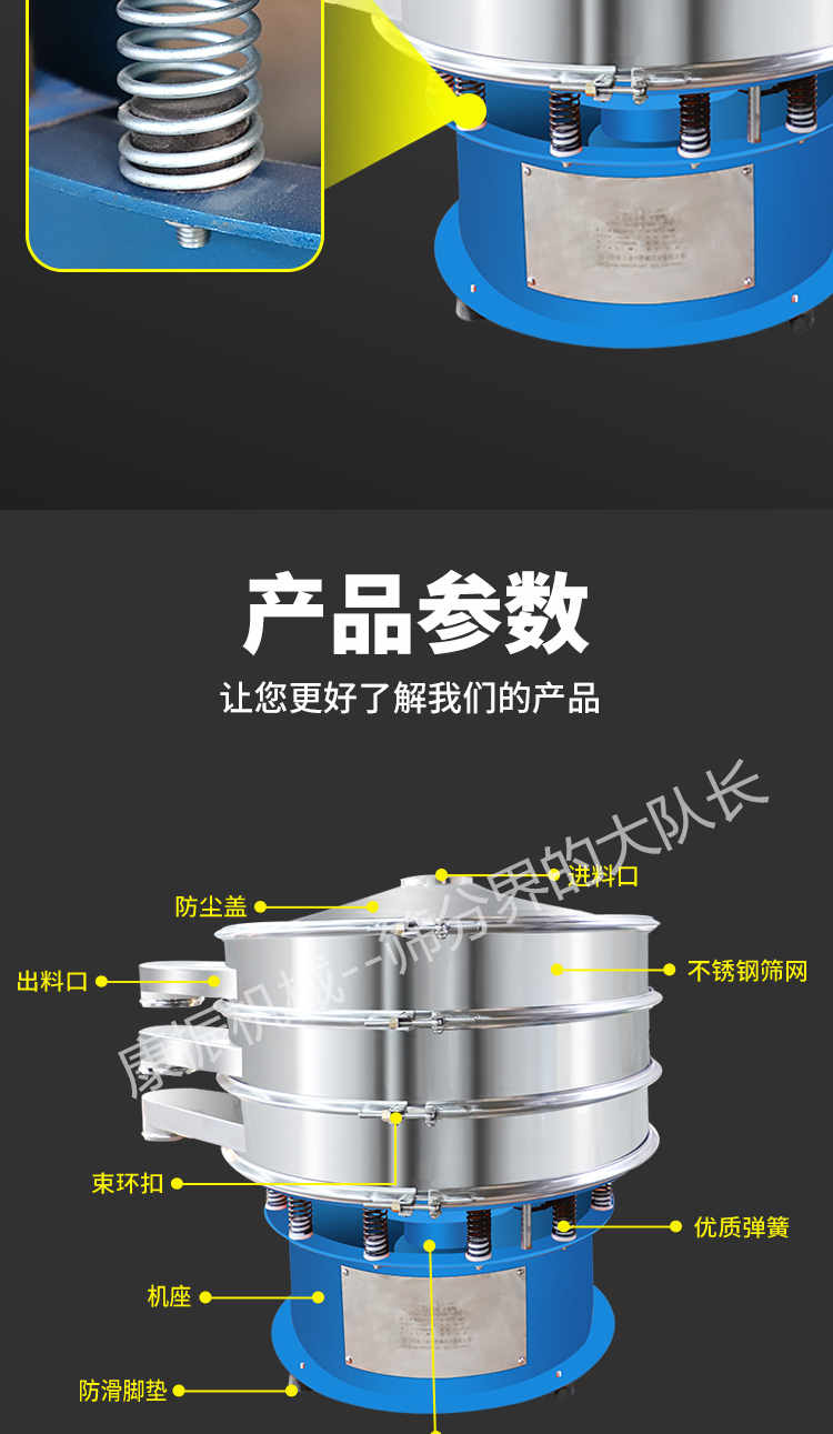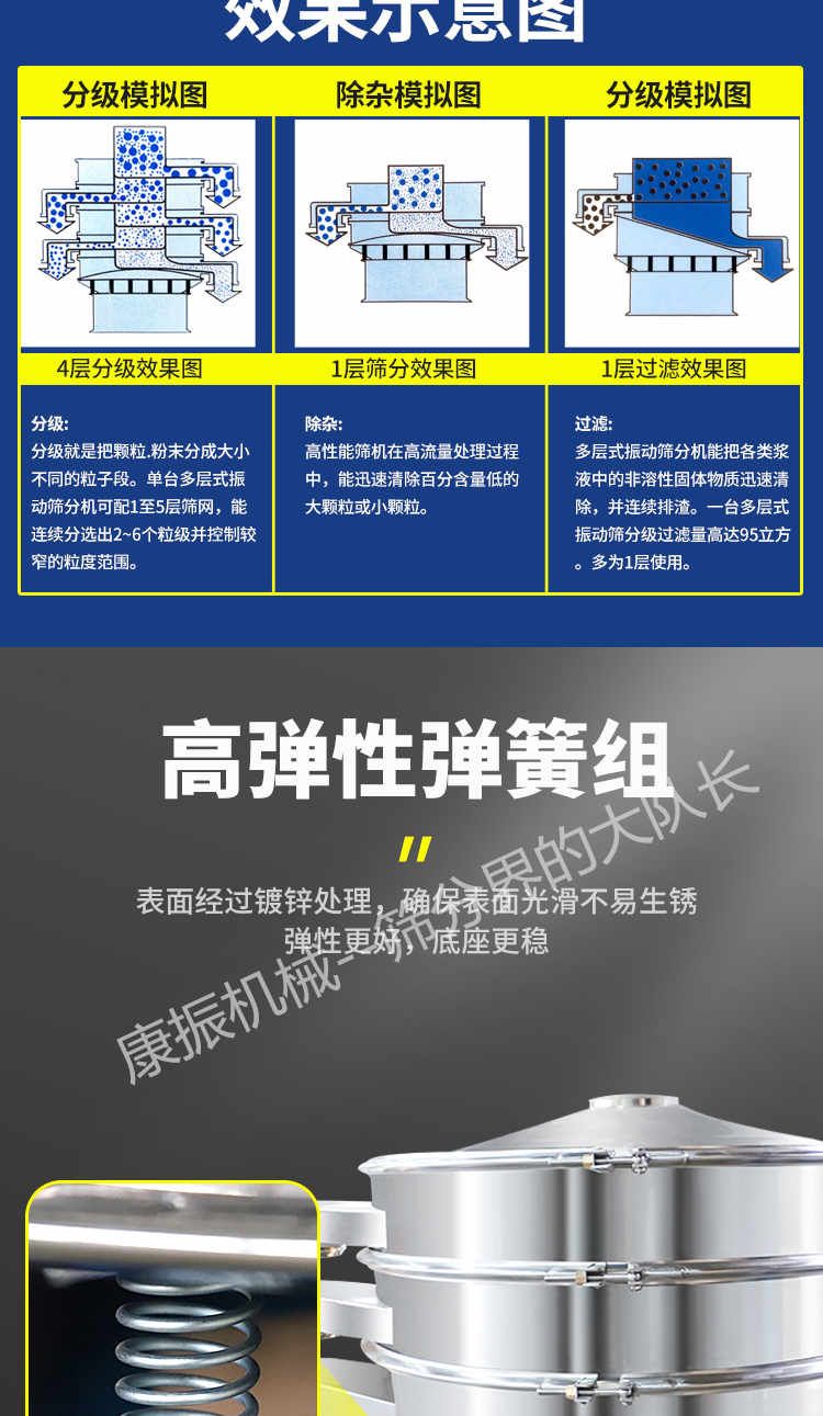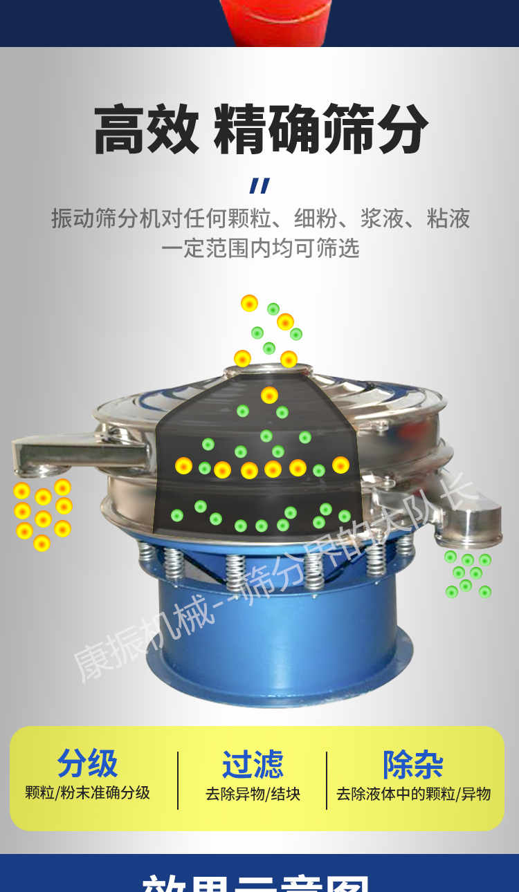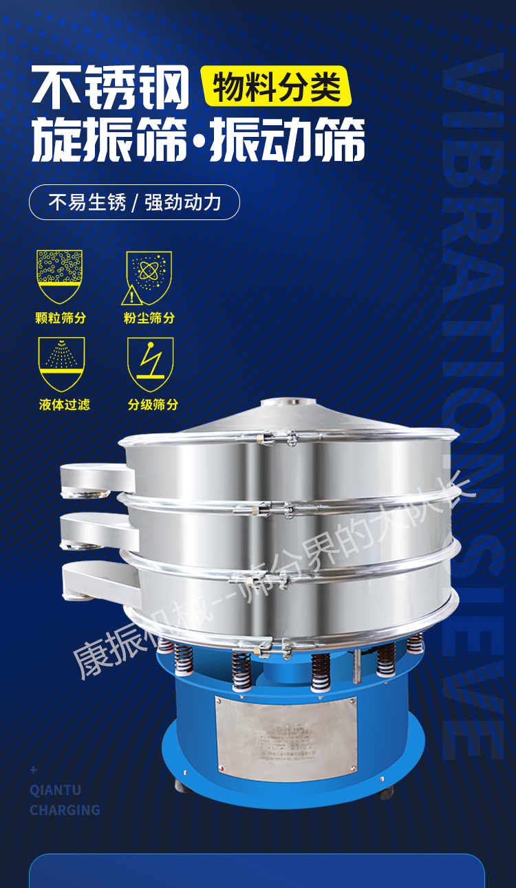 2、去液體:本設(shè)備單層、多層使用,可十分有效地處理固體、液體的混合物料??焖賹崿F(xiàn)固液分離,并篩選過濾出不同的目的物料。